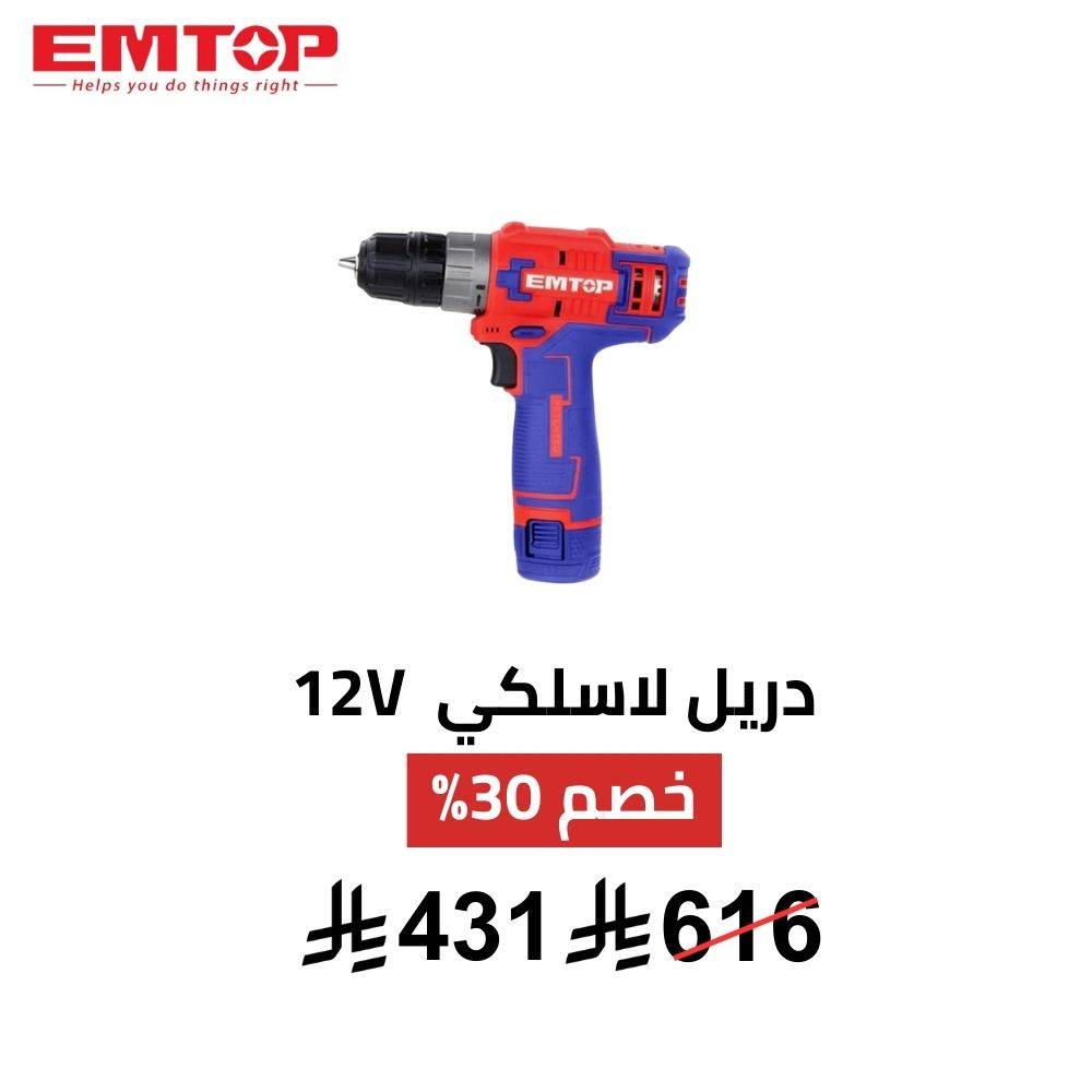 دريل لاسلكي EMTOP – 12V | دقاق
