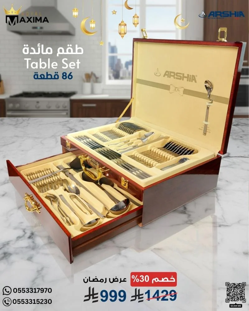 #أرشيا #أدوات_مائدة #86_قطعة #طقم_فضي #ستانلس_ستيل #نيكل #كروم #فخامة_المائدة #هدايا #طقم_عرايس #عروض_رمضان #رويال_ماكسيما #السعودية