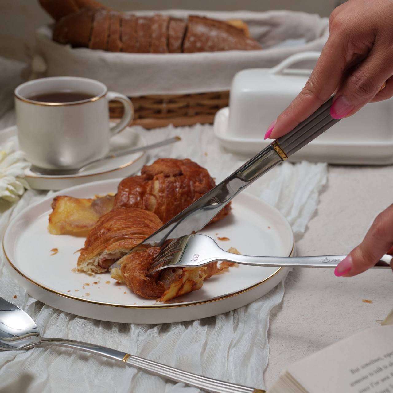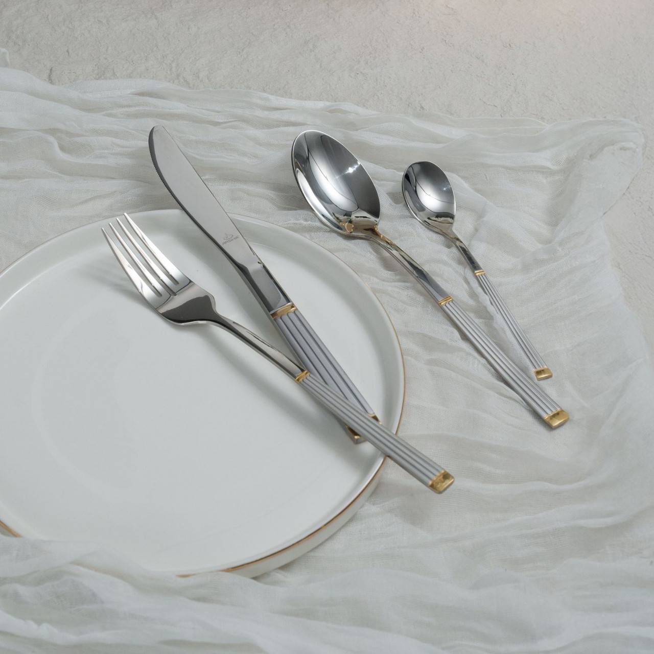 استمتعي بطقم أدوات مائدة يجمع بين الفخامة والعملية، بمزيج أنيق من اللون الذهبي مع الفضي ليمنح مائدتك لمسة فاخرة في العزائم والمناسبات والاستخدام اليومي 👌