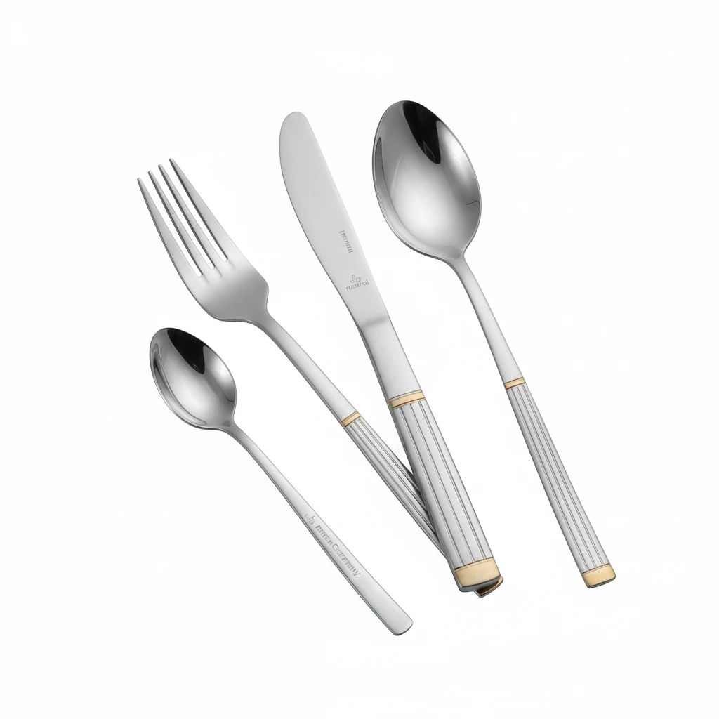 طقم أدوات طاولة الطعام الفاخر من ARSHIA الألمانية – 86 قطعة ذهبي وفضي 🍽️