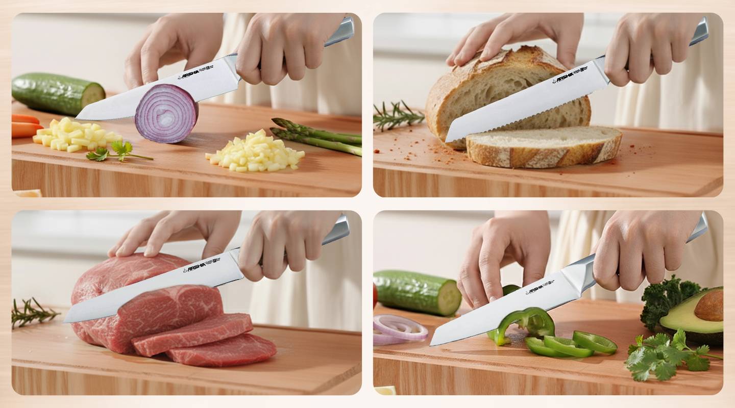 🔹 السكاكين حادة جدًا وتقص بسهولة بدون ما تضغط
