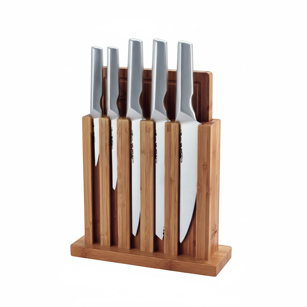 ارتقِ بمطبخك مع طقم السكاكين من Arshia المكوّن من 7 قطع مع قاعدة خشب الأكاسيا، والمصمّم للاستخدام اليومي بجودة عالية تجمع بين شفرات قوية، لوح تقطيع من الخيزران، وقاعدة عملية لتوفير المساحة 👌