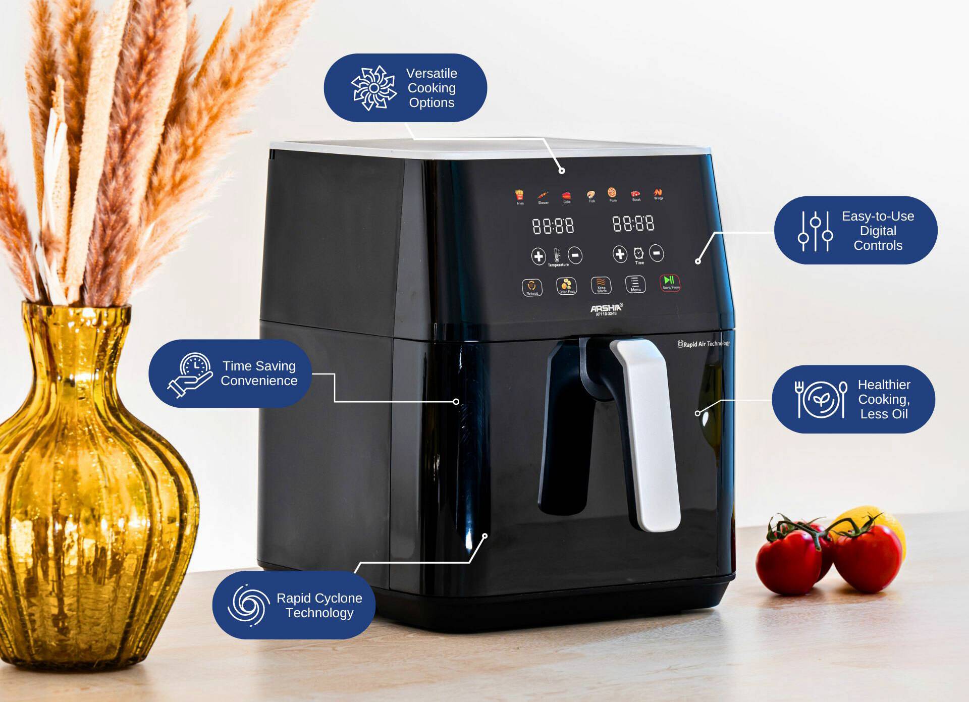 مقلاة هوائية – أرشيا – طهي صحي – طهي سريع – ARSHIA Air Fryer – أجهزة مطبخ – أجهزة كهربائية – تكنولوجيا ألمانية – Royal Maxima – رويال ماكسيما – عروض رمضان