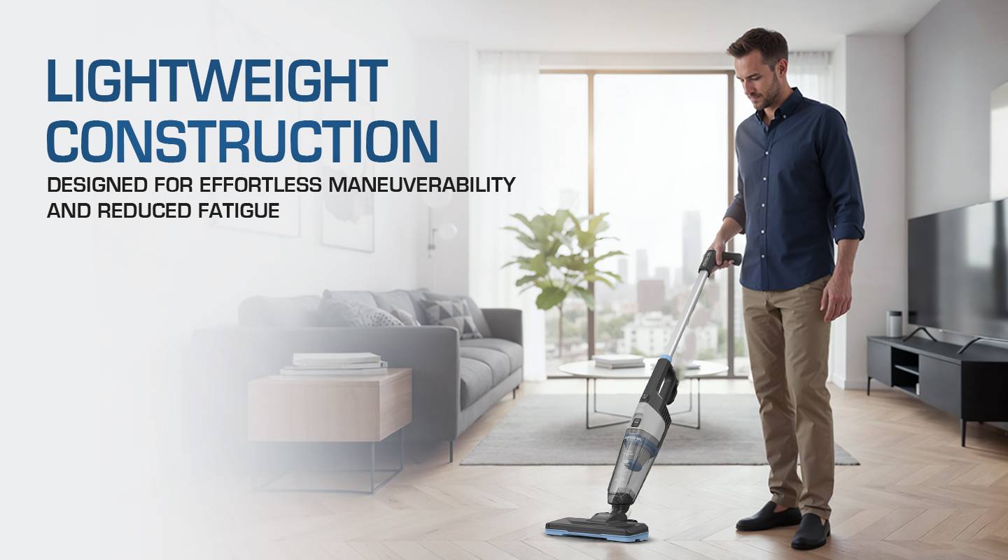 تأتي بتصميم مزدوج الاستخدام حيث يمكن تحويلها بسهولة من مكنسة عمودية إلى مكنسة يدوية، مع ثبات ذاتي لسهولة التخزين والاستخدام في أي وقت 🏡